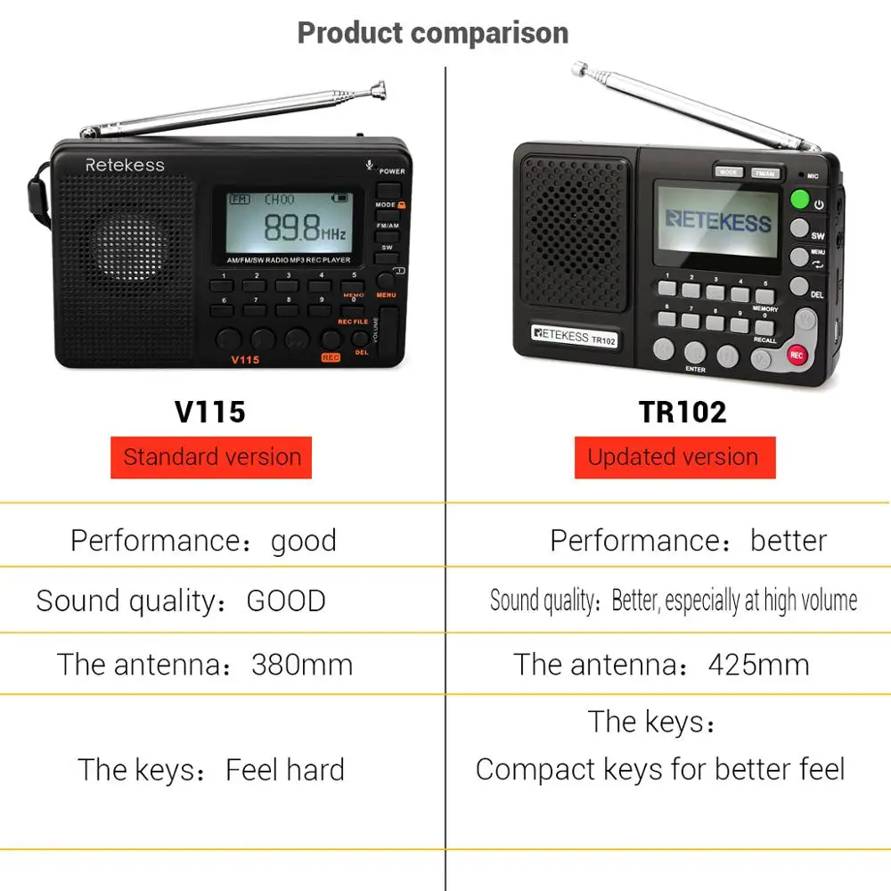 Best . (19% Off) Buy Retekess TR102 Portable Radio FM AM SW World Band Receiver MP3 Player REC Recorder With Sleep Timer Black FM Radio Recorder Cheap Online.