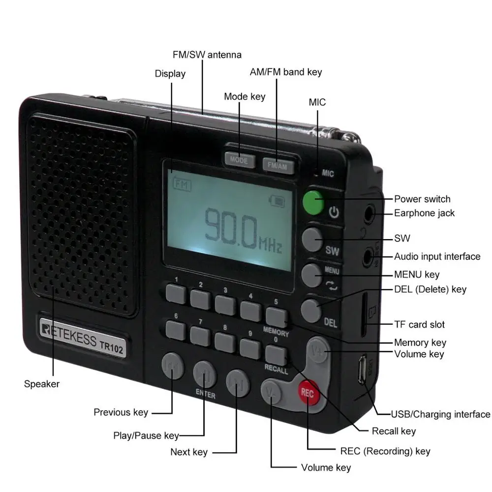 Special Offer Retekess TR102 Portable Radio FM AM SW World Band Receiver MP3 Player REC Recorder With Sleep Timer Black FM Radio Recorder Discount 19% Today!
