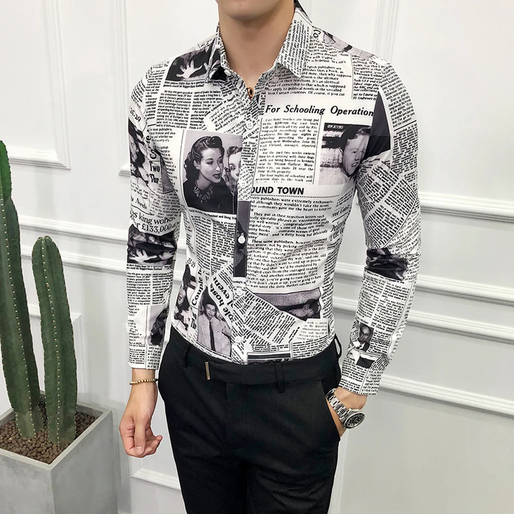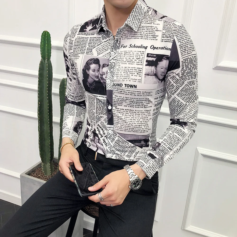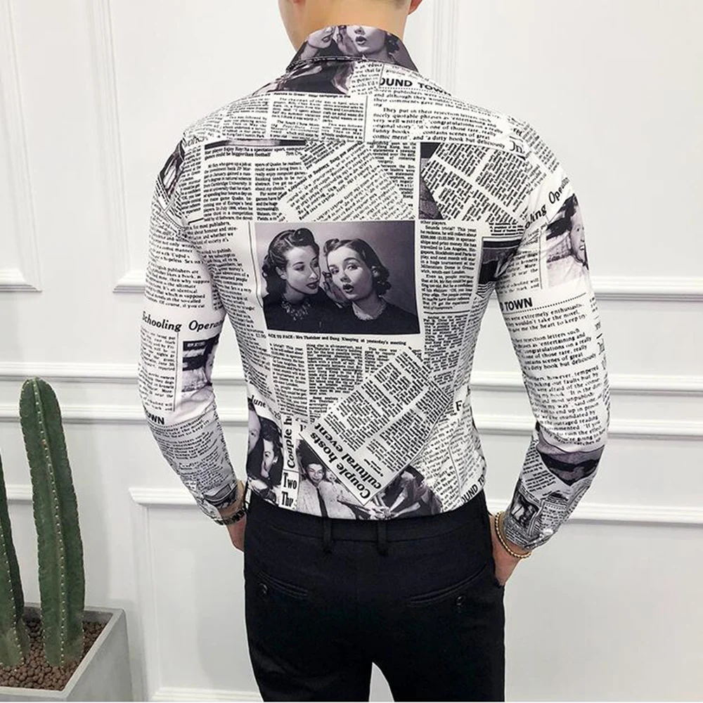 Special Offer Fashion Casual Men s Long sleeved Shirt Spring And Autumn New M 5XL Printing Newspaper Slim Shirt Personality Youth Popular Discount 31% Today!