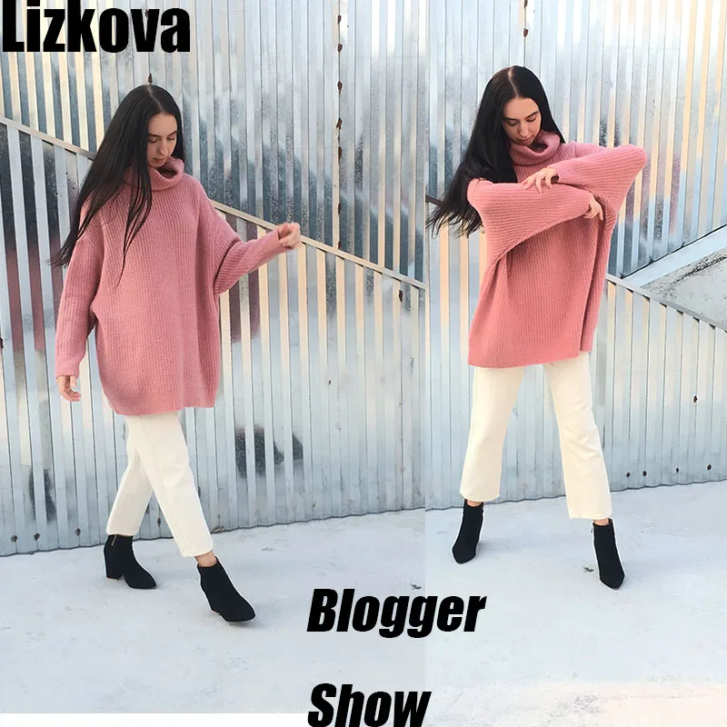 Special Offer 2019 Women Oversize Sweater Pink Turtleneck Knitted Pullover Sweater Warm Loose Sweater Korean Fashion Women Knitwear Discount 40% Today!