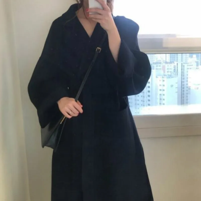 Special Offer Women yellow Elegant Winter wool Overcoat Long Bandage Woolen Coat Cardigan Loose Plus Size outwear with pocket turn down collar Discount 12% Today!