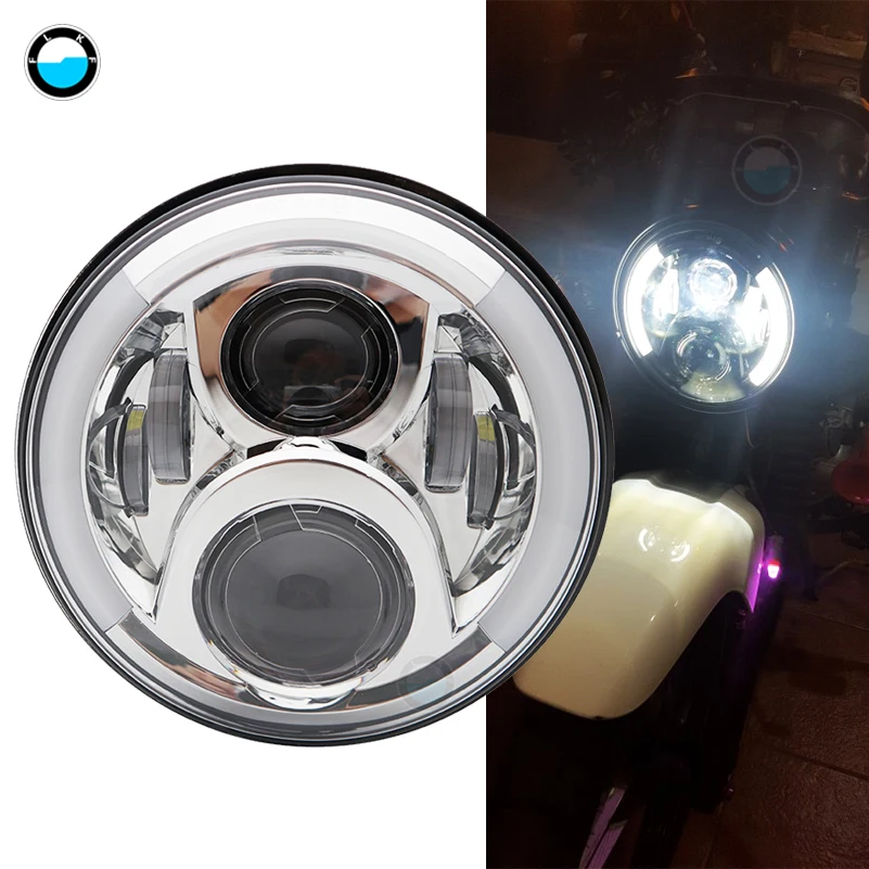 Special Offer 7 Inch 60W DOT SAE E9 Motorcycle Headlamp with angle eye Led Headlight 7inch housing bucket trim ring. Discount 21% Today!