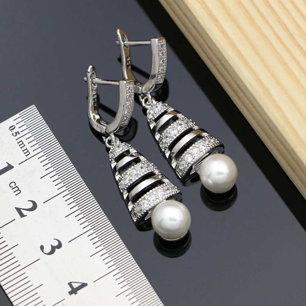 Special Offer 925 Silver Bridal Jewelry Sets Freshwater Pearls White Zircon For Women Wedding Earrings Ring Bracelet Necklace Set Dropshipping Discount 36% Today!
