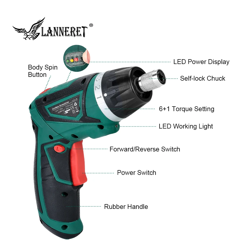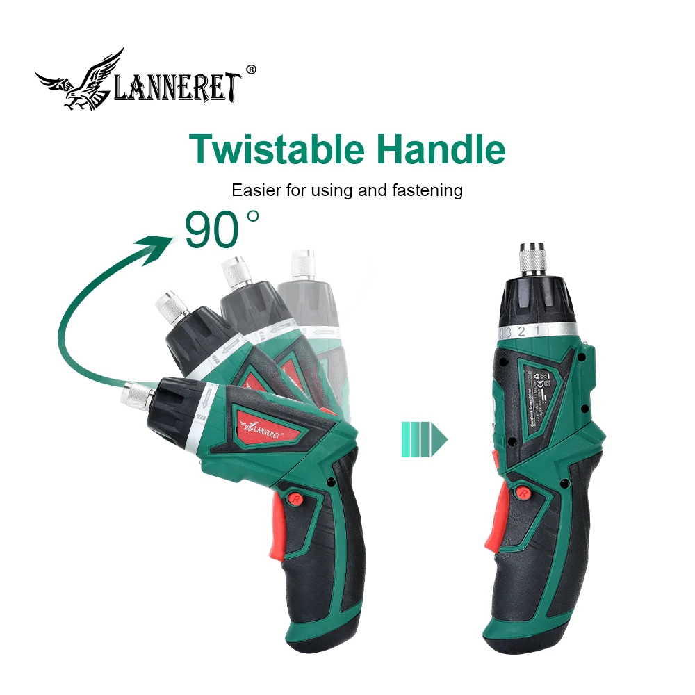 Special Offer LANNERET 7.2V Li Ion Cordless Electric Screwdriver Household Rechargeable Twistable Handle Discount 39% Today!