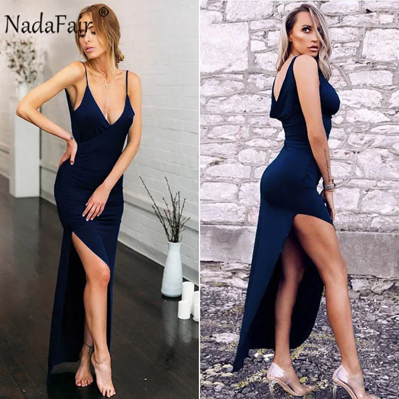 Best . (40% Off) Buy Nadafair Deep V Neck Maxi Party Dress Women Backless High Split Spaghetti Strap Long Bodycon Club Sexy Dress Summer Vestidos Red Price Online.