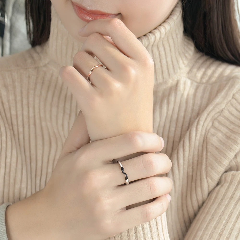 Best . (40% Off) Buy Thaya Winding Design Finger Ring s925 Silver Black and Rose Gold Simple Couple Interlocking Rings for Women Elegant Jewelry Cheap Online.