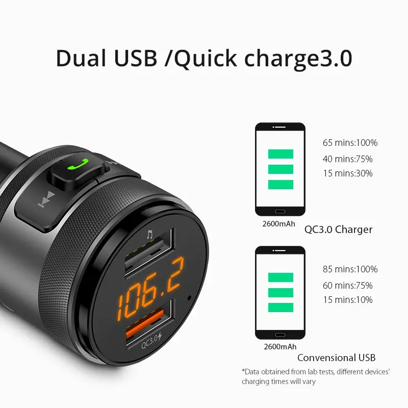 Best . (40% Off) Buy VANJEW C57 Quick charge 3.0 Car Bluetooth FM Transmitter Dual USB Ports Car Charger FM Modulator MP3 Player Car Lighter Handfree Price Online.