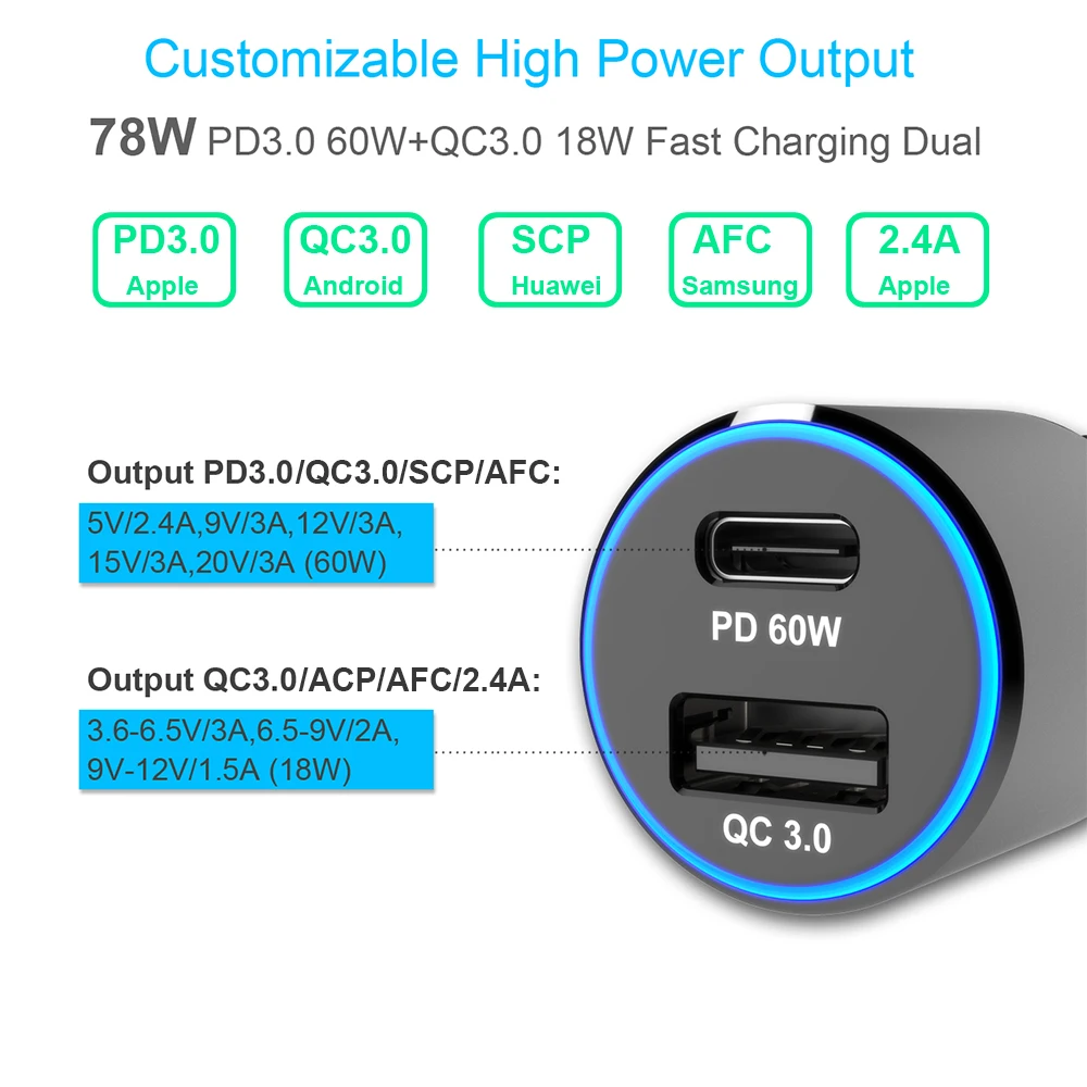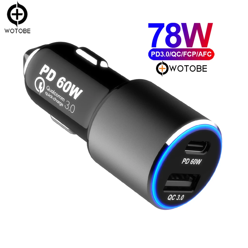 Special Offer 2port 78W Car Charger,TYPE C PD 60W USB C power adapter Super Speed,Fast Charge QC3.0 18W for Macbook iPhone s9 s10 p30 xiaomi Discount 44% Today!